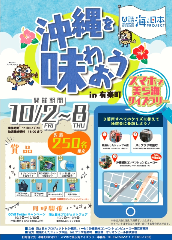 会場:(一財)沖縄コンベンションビューロー東京事務所、銀座わしたショップ本店、JALプラザ有楽町