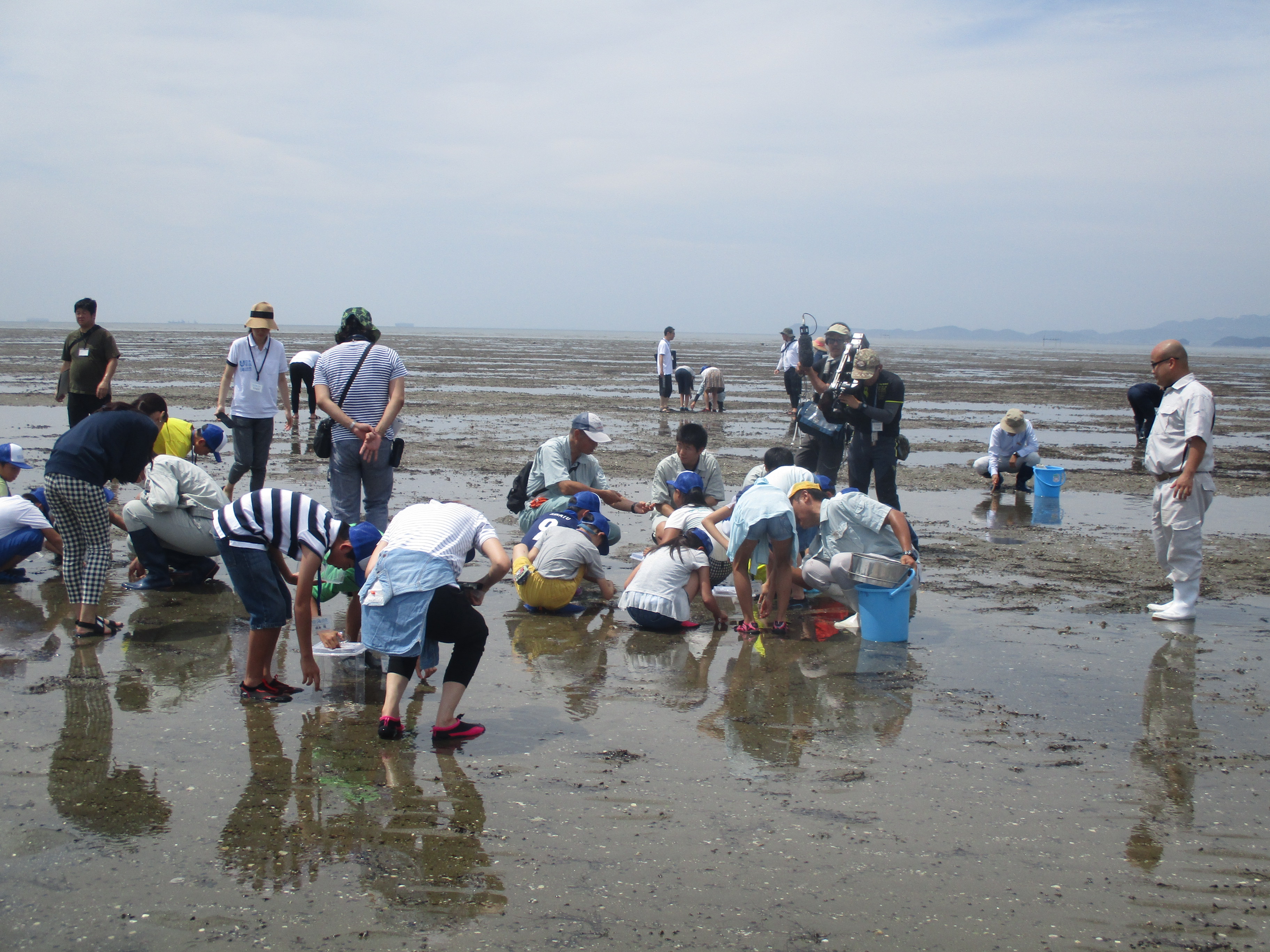 愛知県の海と川にはウナギが生息していることが確認されています。この環境学習ツアーでは、ウナギの生きる海と川を知り、その環境をどう守っていくかを考えます。1日目は「石倉かご」という漁法を用いて川に生息するウナギを捕獲、体内に電子タグを埋め込み再び川に戻すことで回遊ルートをモニタリング。海から川につながるウナギの遡上ルートは?また、その生態とは?専門家の先生から学びます。続いて、干潟では、海の生物を採取、観察することで干潟が生物に与える影響について考えます。2日目は新城市へ。森林の腐葉土から流れる成分はやがて海の生き物の栄養となることを知り、里山の整備体験をします。最後には学んだことをイラストとコピーで表現、後日、割り箸の袋に印刷され配布されます。