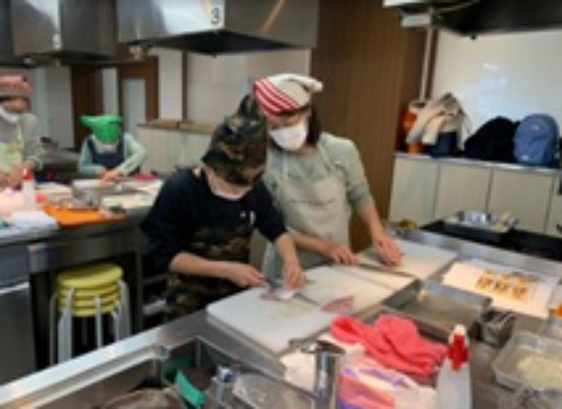 | 開催日付の補足/日程詳細 | 11時30分~ さばける塾説明・海プロ説明・講師、参加者自己紹介 (密を避けるため2教室で分散開催) 11時45分~ 講師による魚をさばくデモンストレーション(クロダイ=チヌ) 12時00分~ さばける体験(クロダイ) 12時15分~ 講師によるさばけるデモンストレーション(アジ) 12時30分~ さばける体験(アジ)⇒さばいたお魚で調理体験 (大名おろし・アジフライ・盛り付け) 13時00分~ 試食 さばける動画視聴・海についての学び(講義) ・質疑応答 ※学びは2教室で2回講義 13時30分~ さばけるライセンス授与・アンケート・集合写真 ※写真撮影は屋外で |