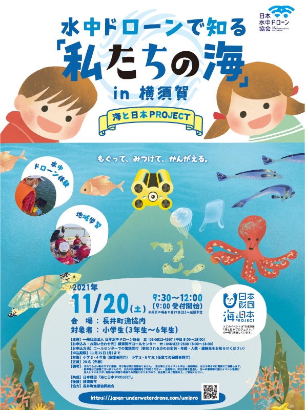 | 問合先 | ※参加応募は横須賀市コールセンターへご連絡ください 横須賀市コールセンター 046-822-2500(8:00~18:00) 一般社団法人日本水中ドローン協会 03-5812-4367 |