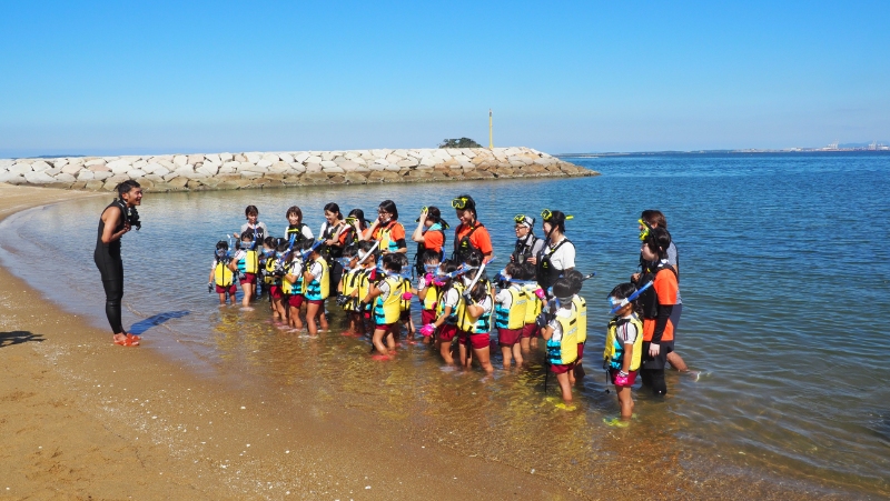 | 開催場所の具体的記述 | 開催場所:志賀島休暇村(福岡市東区勝馬1803-1) シュノーケル体験場所:下馬ヶ浜海水浴場 |