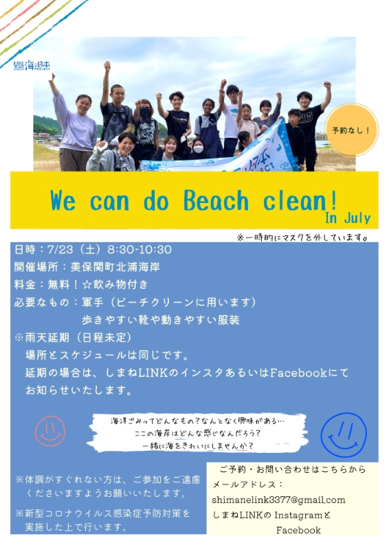 7/23に美保関町北浦海岸で実施します!