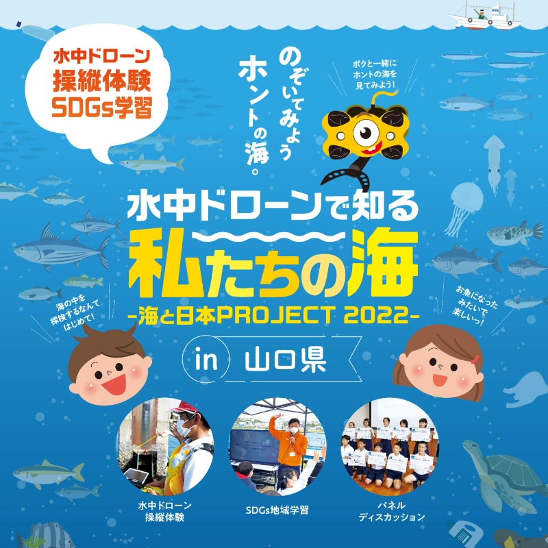 この度、一般社団法人日本水中ドローン協会と水中ドローンスクール山口校(株式会社イシン)は、地元小中学生に水中ドローンを通じて、地元の海を見てもらうことにより、海に関する興味を掻き立て、ひいては「海を大切にしよう」と思ってもらうことを企図するイベントを開催致します。
