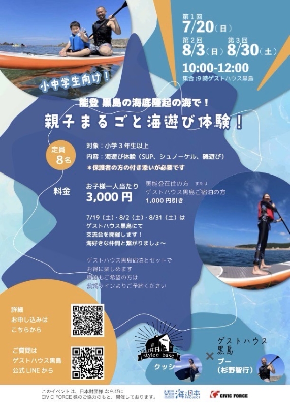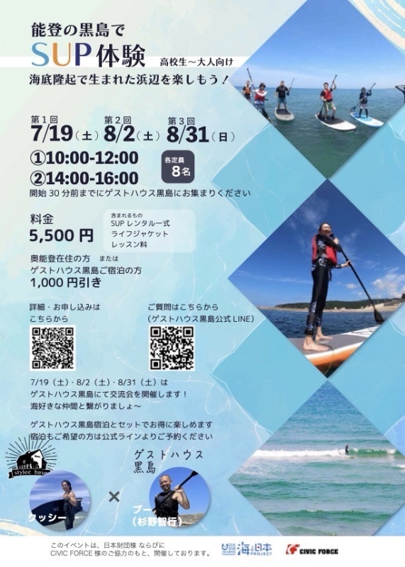 能登黒島・海底隆起の海でSUP体験!(全6回)