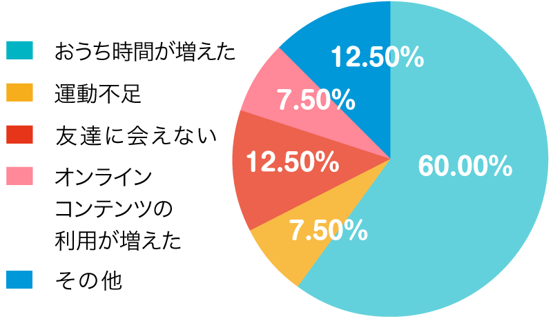 7割のキッズが「おうち時間が昨年より増えた」と実感しています。友達に会えない、オンラインコンテンツの利用が増えたという変化を感じている声が多く、おうち時間が増えて外出の制限がある中でも、海と日本プロジェクトの企画に参加できて良かったという声も。