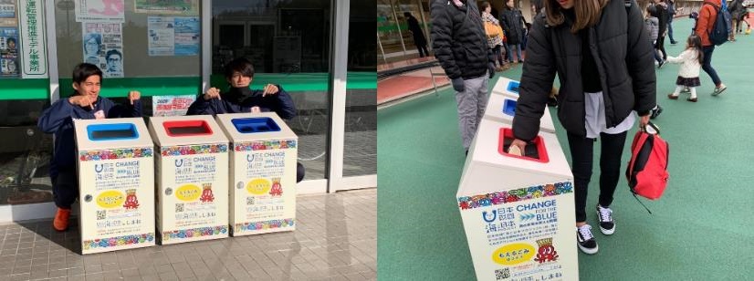 イベントでは、来場者全員にオリジナルごみ袋を配布いたします。試合後に観客席で出たごみを拾い、会場内に設置したオリジナル分別ごみ箱を使っていただく「会場クリーンアップ活動」を、選手やスタッフと共に行っていただきます。