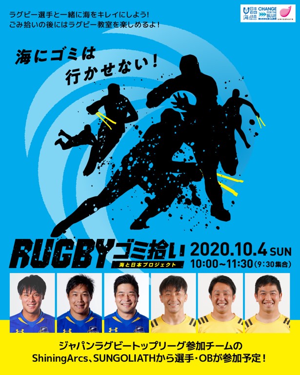 ラグビー選手と一緒に海をキレイにしよう! 10/4(日)RUGBYゴミ拾い開催!