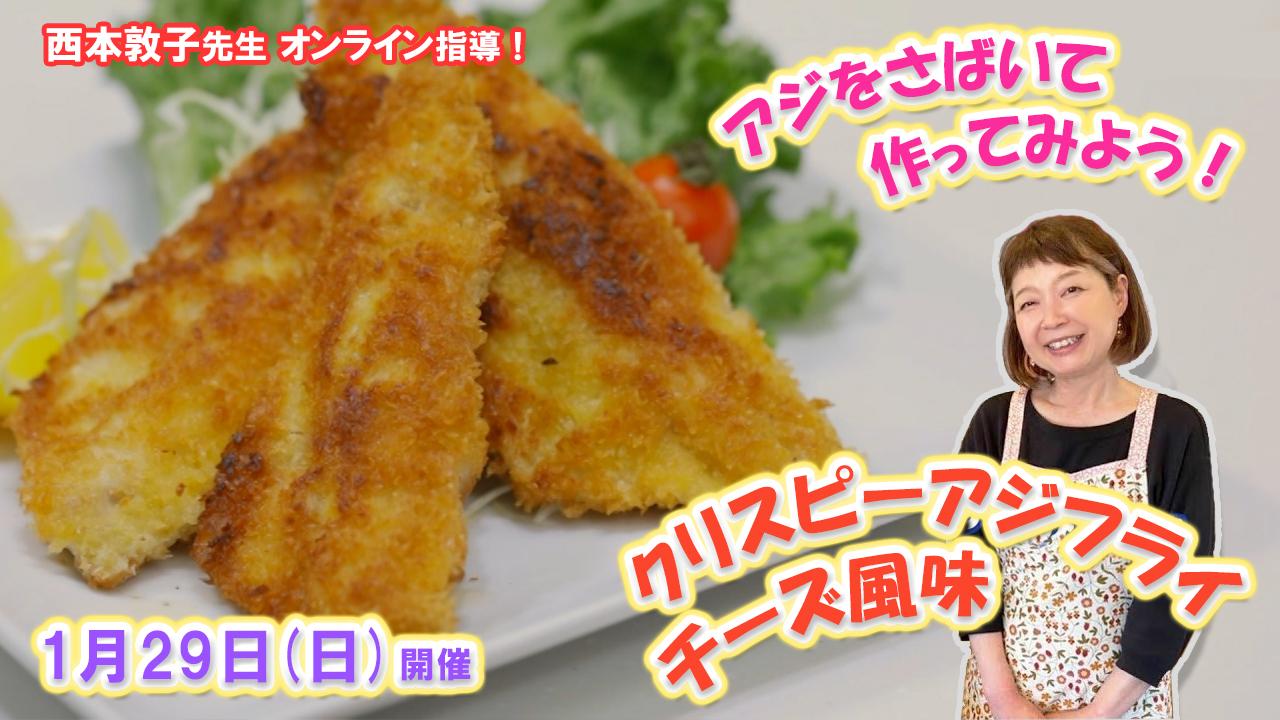 通常はリアル開催することが多い同イベントですが、開催地から離れた地域に住む親子にも、アジのさばき方を学んで貰おうとオンラインで開催。当日は、山陰で活躍するフードコーディネーター西本敦子さんの指導のもとアジをさばいて、洋風アジフライを作ります。また、島根県のブランド魚どんちっちアジや、県魚トビウオのクイズもあり、島根の漁業資源や海の大切さについて学びます。
