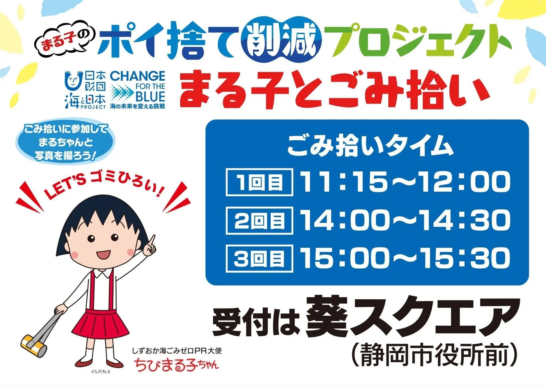 ちびまる子ちゃんとごみを拾って写真を撮ろう!まる子のポイ捨て削減プロジェクト啓発イベントを開催します