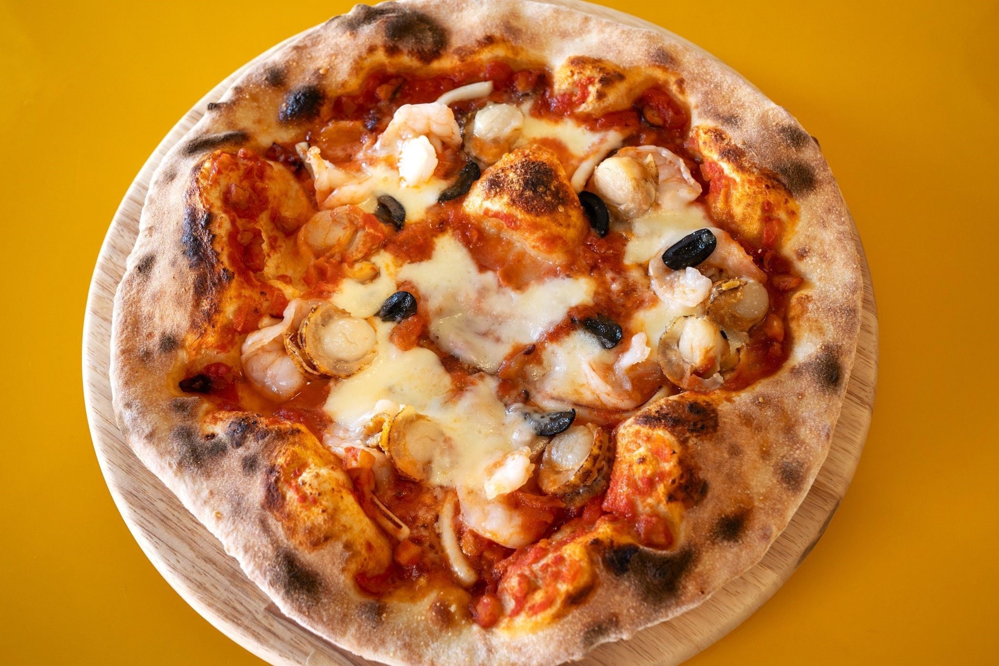 ピッツァには「おタテ」のほか、イカやタコ、エビを使用。主役となる「おタテ」をふんだんにトッピングしており、口にすると「おタテ」の特徴である弾力と凝縮された旨味を感じられます。ソースにはトマトを使い、シーフードとの相性も抜群です。