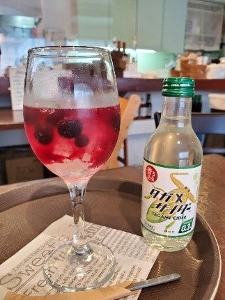 タガメサイダーとブルーベリーのフルーティーな香りと微炭酸で