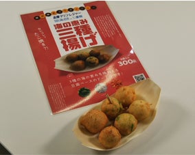 <海の恵み三種揚げ> メニュー:豆腐ベースのドーナツ あおさ、しらす、さくらえびの3種類 販売場所:イルカ島 島内食堂 発売日:イベント期間中の2023年8月10日(木)~9月24日(日) 値段:6個入り 300円(税込) |