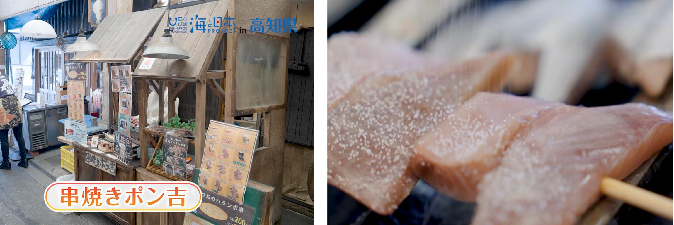 一般社団法人海と日本プロジェクト in 高知 は、海とカツオの一本釣りの町として知られる、高知県中土佐町の久礼大正町市場にある「串焼きポン吉」とコラボレーションし、カツオのハランボを藁焼き燻製にした「かつおの藁焼きハランボ串」を3月28日(木)より販売を開始いたしました。