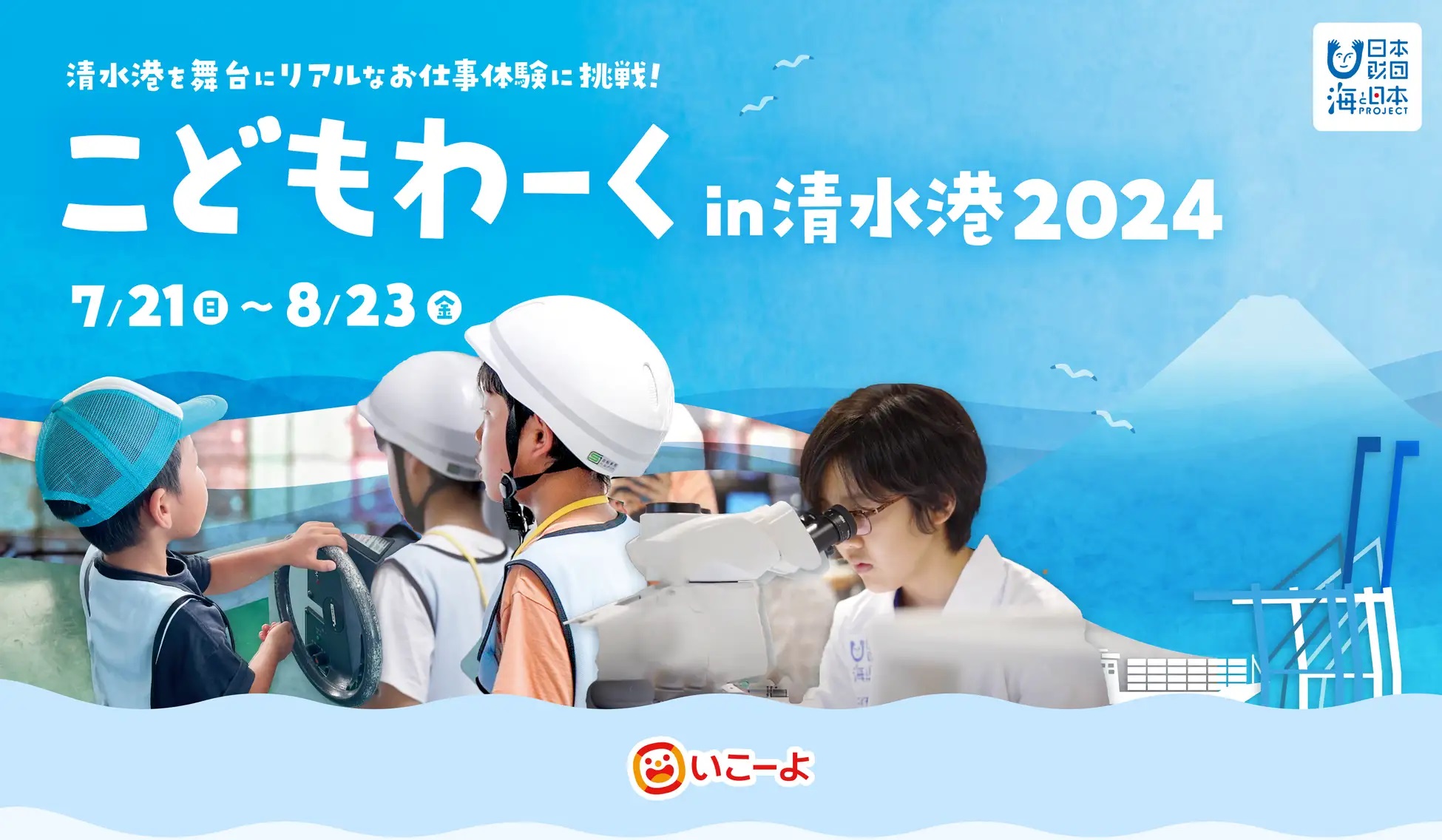 一般社団法人地域みらい創造センター主催、「いこーよ」 を運営するアクトインディ株式会社が企画・監修を務める、小学生向けお仕事体験プログラム「こどもわーくin清水港2024」を2024年7月21日(日)~ 8月23日(金)の期間で実施。静岡県の清水港を拠点とする企業・団体とのコラボレーションにより実現し、多様な海の産業を本物の現場で、本物の仕事人から、本物の仕事を学ぶことができるプログラムです。