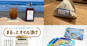 アオリの沖漬けやうつぼの珍味といった海産物をはじめ、地元女性部が手作りした焼肉だれ、薬王寺にまつわる商品など14種を集め、アニメ名場面のステッカーを貼付。二次元コードから手軽にアニメーションが見られます。美波町が舞台の民話を知ってもらうと同時に、美波の海が生み出す美味しさやその土地ならではの食材も知っていただくコラボ企画です。