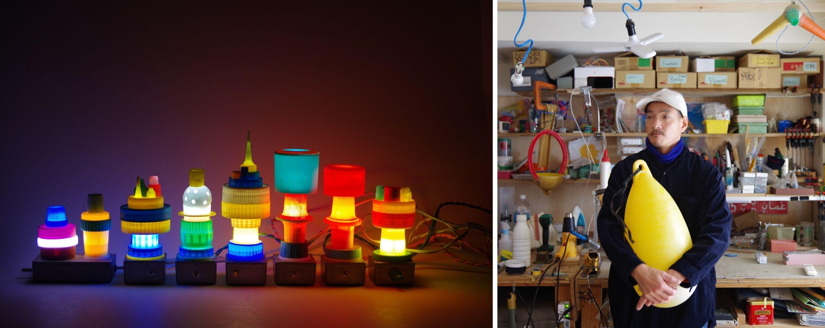 2.リサイクラー・さいとうとおるによる海洋プラスチックで制作した照明作品