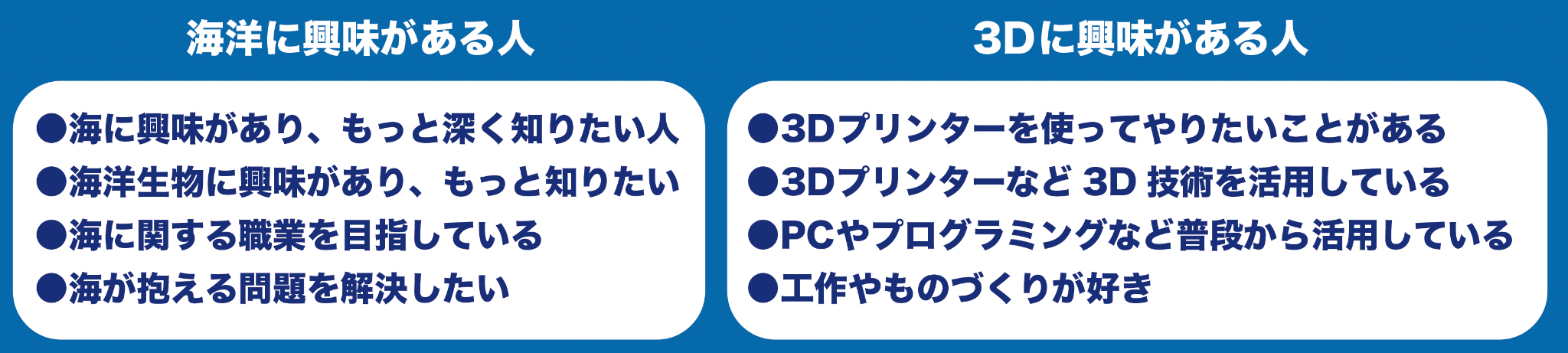 中学生のうちから3Dに触れることで将来的に様々な分野で活躍する3D技術者、研究者を育成することができ、それらが海洋研究・海洋開発の発展にもつながっていきます。