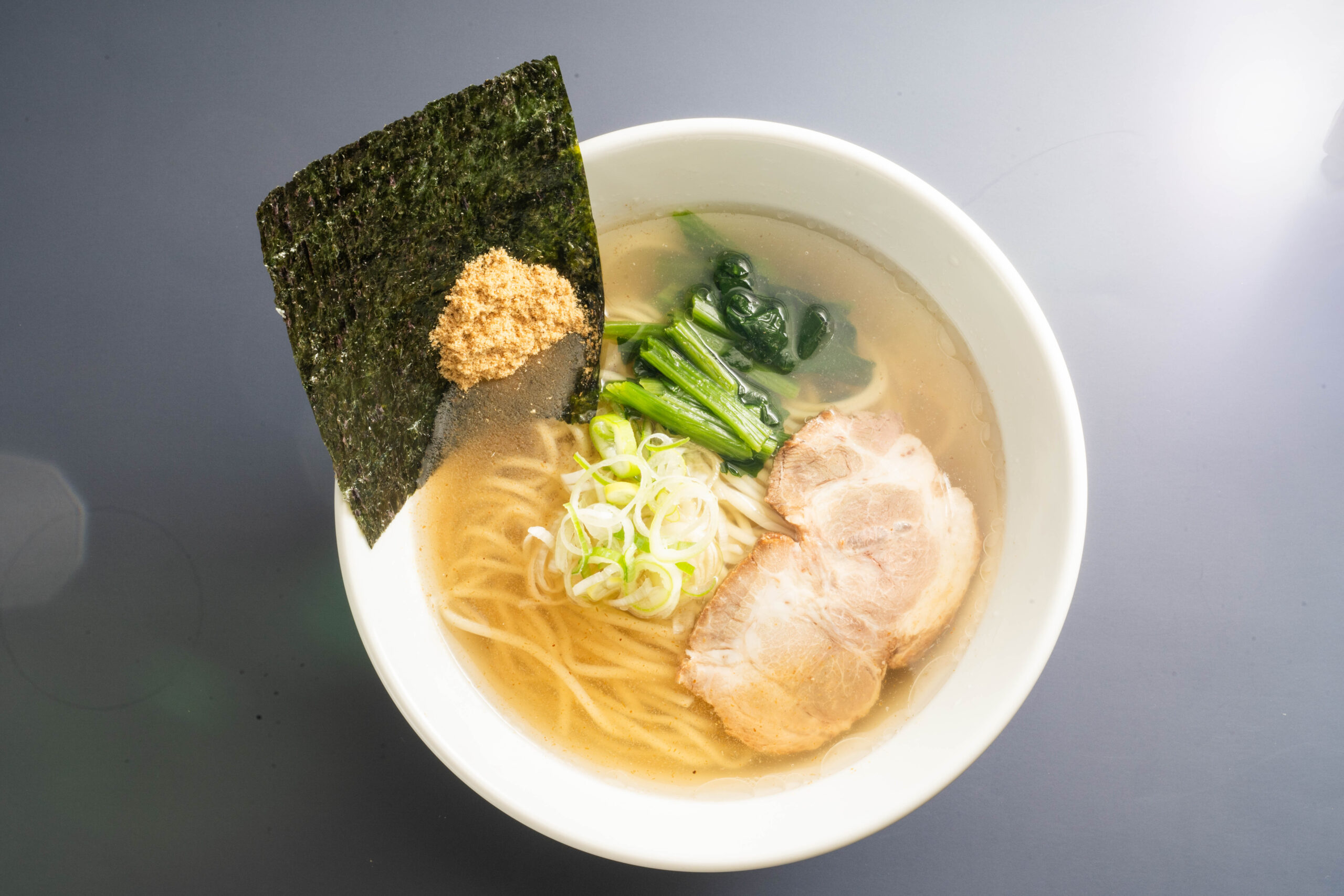 函館ブリ塩ラーメンは、豚や魚介から出汁を取った函館塩ラーメンスープに、まるごとのブリを長時間茹で、丁寧に抽出したブリのエキスをブレンドしています。さらに、一般的に価値がつきにくい脂身が少ないブリを活用した「ブリ節」の粉末をスープに溶かしながら食べることで、香りやうまみの変化を楽しむことができます。