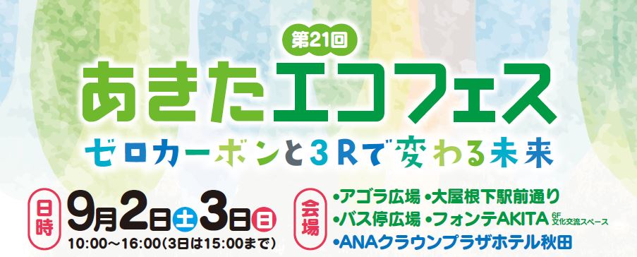 あきた海ごみゼロプロジェクト実行委員会は、9月2日(土)~3日(日)の2日間に秋田駅前で行われる、未来の秋田をテーマにした環境イベント「第21回あきたエコフェス」にてあきた海ごみゼロプロジェクト実行委員会の活動報告や来場者の方々と一緒に会場付近の清掃活動を実施します。