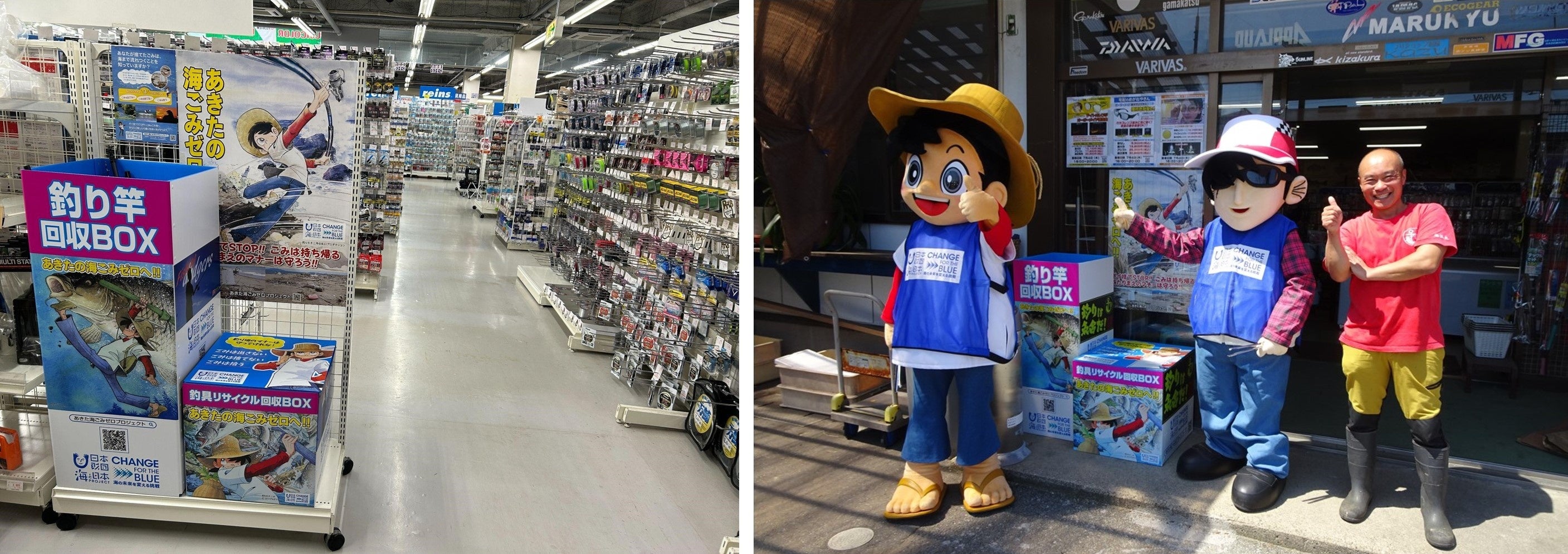 この取り組みが釣り場での釣具のポイ捨てや、置き捨てを防ぎ、海の環境を守ることに繋がればと思います。今年、釣具店2店舗の協力を得て釣りキチ三平釣り具回収BOXを設置しました。