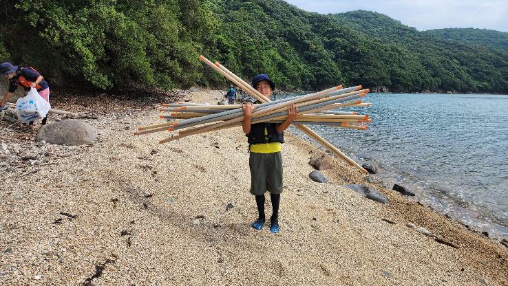 SCBC島風は、小豆島のごみ問題の一つである、海沿いの道から崖下砂浜に投棄された家庭ごみ等のごみを拾...