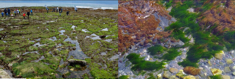 青のりとは、スジアオノリ、ウスバアオノリなど、旧アオノリ属に分類される海藻の総称です。「アオノリ」と聞くと、たこ焼きの上にふりかける緑色の粉が思いうかびますが、実はあの多くは「アオサ」という異なる海藻。本物の青のりは、アオサの数倍の値がつく高級食材で、一流レストランや和菓子店で使用されていて、九州や四国では古くから、青のり(スジアオノリ、ウスバアオノリなど)を採取し、特産品として販売されています。一方で、北海道では天然青のりの採取・活用がされていません。そこで、「はこだて海の教室」では、その事実関係や背景、北海道産天然青のりの商品化の可能性について探るため、2021年に独自調査を行いました。