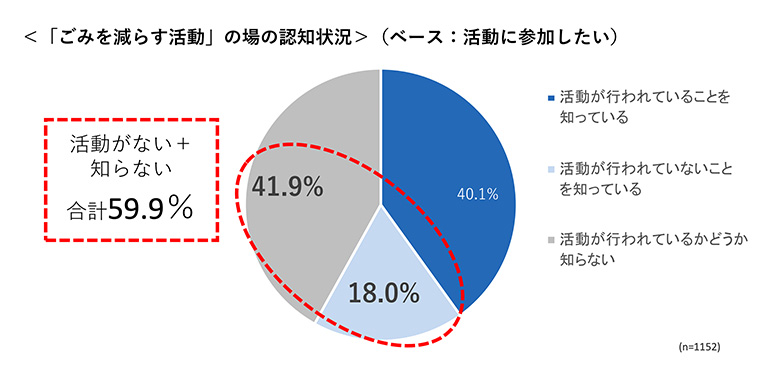 その一方で、「地域にごみを減らす活動がない」、または「活動を知らない」という人が半数を超えていて、活動しやすい場が少ないという結果に。