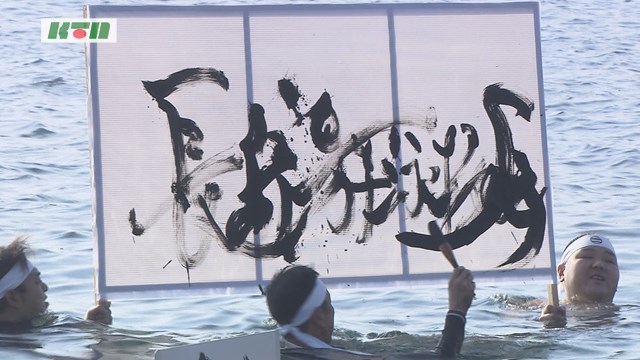 長崎では120年の歴史をもつ伝統の寒中水泳が行われました。2年ぶりの開催でしたが、古式泳法で1畳ほどの大きさの紙に文字を書く「大水書」も披露。参加したのは9歳から77歳までの約30名で、水温約13度の真冬の海に入って心身を清め、清々しい表情で新たなスタートを切った様子でした。