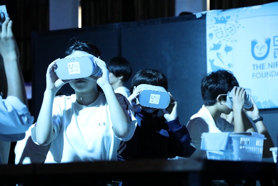 海と日本プロジェクトのサポートプログラムとして実施されたVR(バーチャルリアリティ、仮想現実)を用いて海を学べる新感覚の“教育用エンターテイメント”「海といのちのエンドレスチェイン」。2018年には、小・中学生などを対象にイベントも行われました。