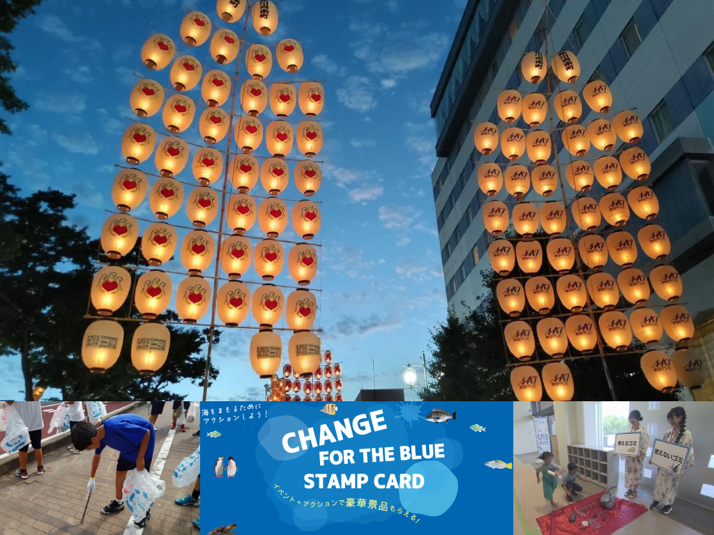 また竿燈にも、秋田の中高生が取り組んできた海洋ごみ対策への想いを託した提灯を吊り下げ、約122万人ともいわれる今年の竿燈まつり来場者へ海ごみゼロをアピールしました。